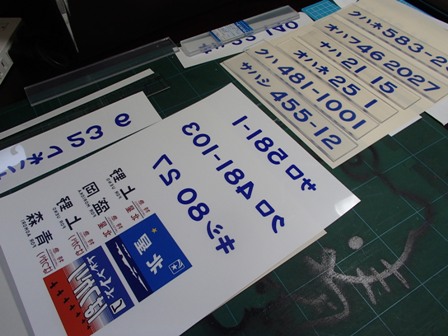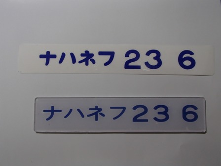 アクリル板に鏡文字を裏から貼り付ける作業を進めます。書体が実車さながらのクオリティなので、作業途中でもうれしくて何度も観察してしまいます。