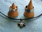 | 体験された方たちの作品です。講師が丁寧に指導しますので、ごらんのような本格的なシルバーアクセサリーが制作できます。 |
